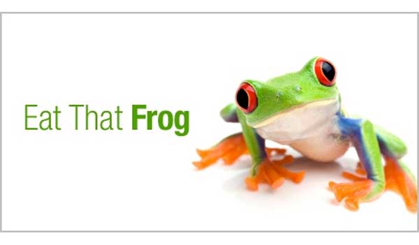 Cuốn Eat That Frog - 21 Great Ways to Stop Procrastinating and Get More Done in Less Time của tác giả Brian Tracy dịch sát nghĩa là Ăn ngay con ếch đó – 21 nguyên tắc tránh trì hoãn và hoàn thành nhiều việc trong thời gian ngắn nhất.